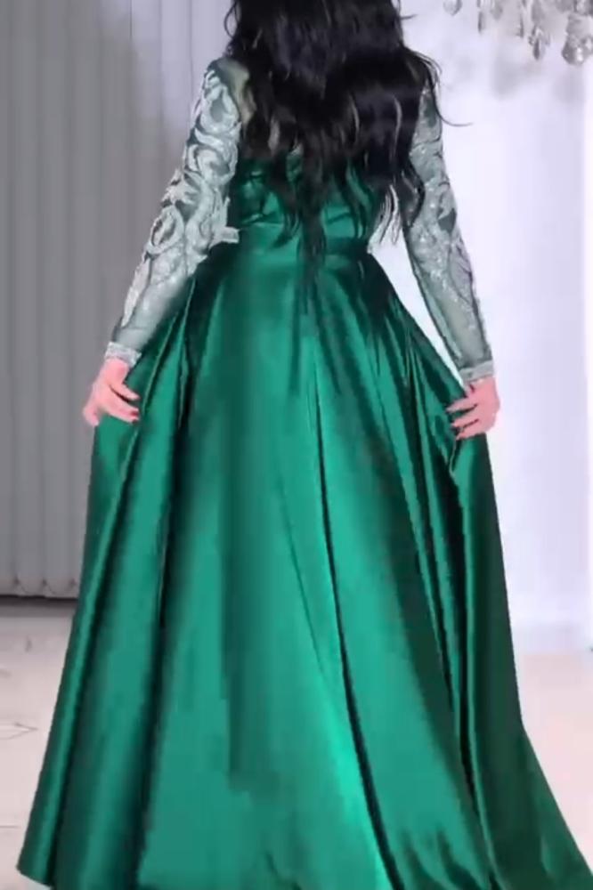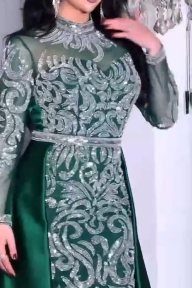 فستان سهره قماش تفته استرتش مرصع بالفصوص